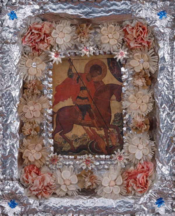 В советское время мастера переосмыслили киоты стали создавать собственные варианты подобных икон-бриколажей. В качестве молельного образа использовались дореволюционные святые образа, медальоны утраченных царских врат, литые распятия, рождественские ангелы, печатные репродукции с религиозными изображениями, фотографии и т. п. Среди материалов для изготовления окладов встречаются лыко, фольга, парафин, ткань свадебных платьев и даже пионерских галстуков. Многообразие технологий, изобретенных для украшения икон, привело к формированию локальных традиций, которые могли сильно отличаться даже в соседних регионах.